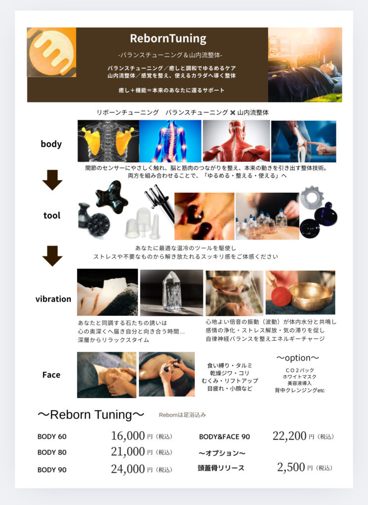~ ご来店後の流れ ~ 入口にアルコール消毒、お手洗いにうがい薬を備えておりますので、 どうぞご協力お願い致します。 初回、カウンセリングシート記入 ↓ 着替え(ご用意しております) ↓ チューニング施術(足浴からスタート) ↓ 着替え ↓ アフタードリンク ↓ ・ご要望に応じてセルフケア、次回予約など承ります。