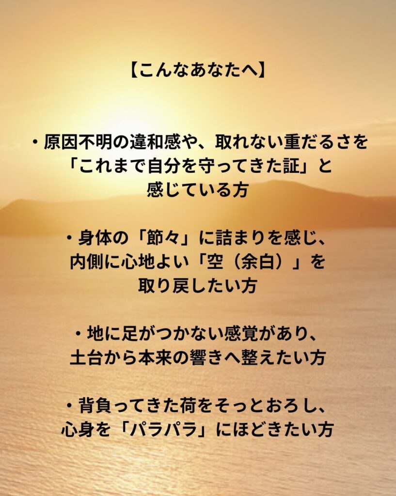 その「強張り」にありがとうを伝え、パラパラにほどかれていく体験をしてみませんか?